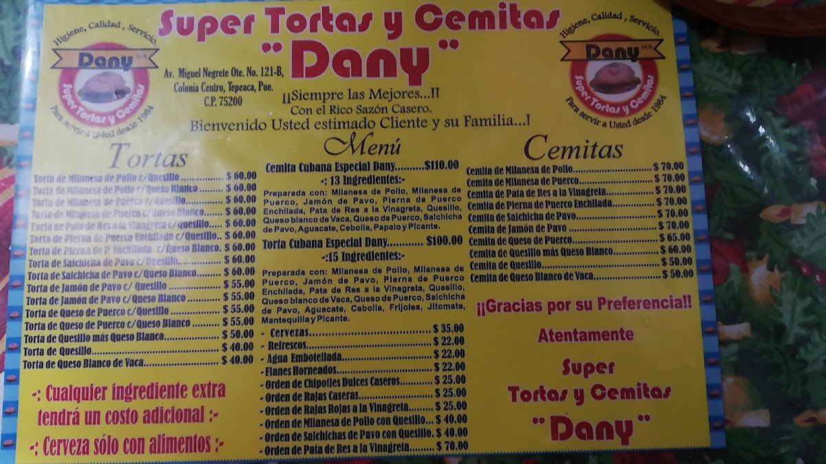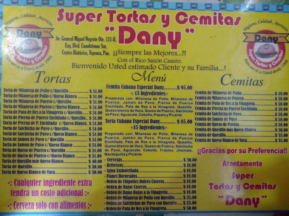 Super tortas Y Cemitas Dany Menu